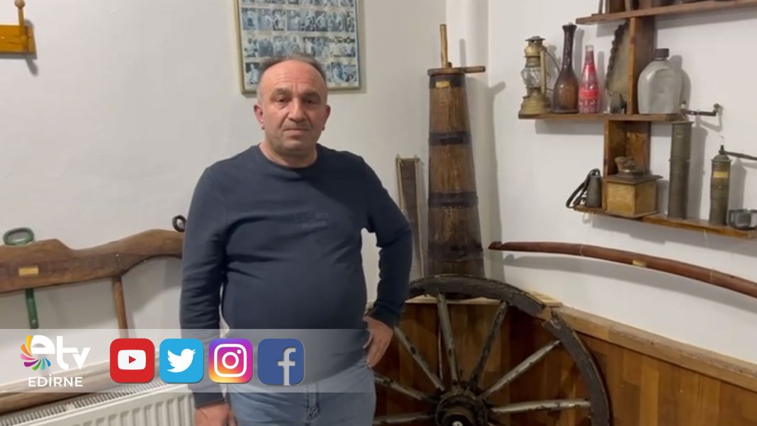 Edirne Havsa Azatlı Köyünde, Mustafa Aydın isimli bir kahve işletmecisi, tarihi eserleri kahvesine yerleştirip dekor yaptığını belirtti.