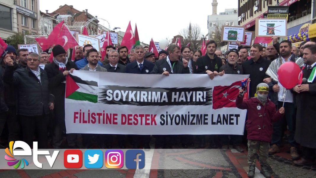 Edirne’de Filistin’e destek olma amacıyla yürüyüş ve basın açıklaması düzenlendi. Filistin’e Destek Platformu öncülüğünde düzenlenen yürüyüş, Cuma namazı sonrası Eski Cami önünden başlayarak, Saraçlar Caddesi’nde bulunan PTT önünde sona erdi. Yoğun katılımın olduğu etkinlikte, vatandaşlar ellerinde dövizler taşıyarak, sloganlar attı. Burada konuşan Filistin’e Destek Platformu Edirne Temsilcisi Ahmet Çetin, “Gazze’de yaşananlar kelimenin tam anlamıyla yüzyılın soykırımıdır.” diye konuştu.