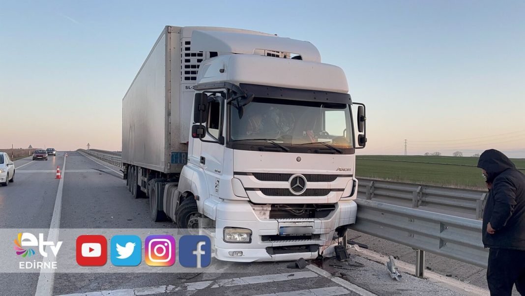 Edirne-Havsa yolunda M.N. idaresindeki tır, sürücüsünün direksiyon hâkimiyetini kaybetmesi sonucu bariyerlere çarptı.