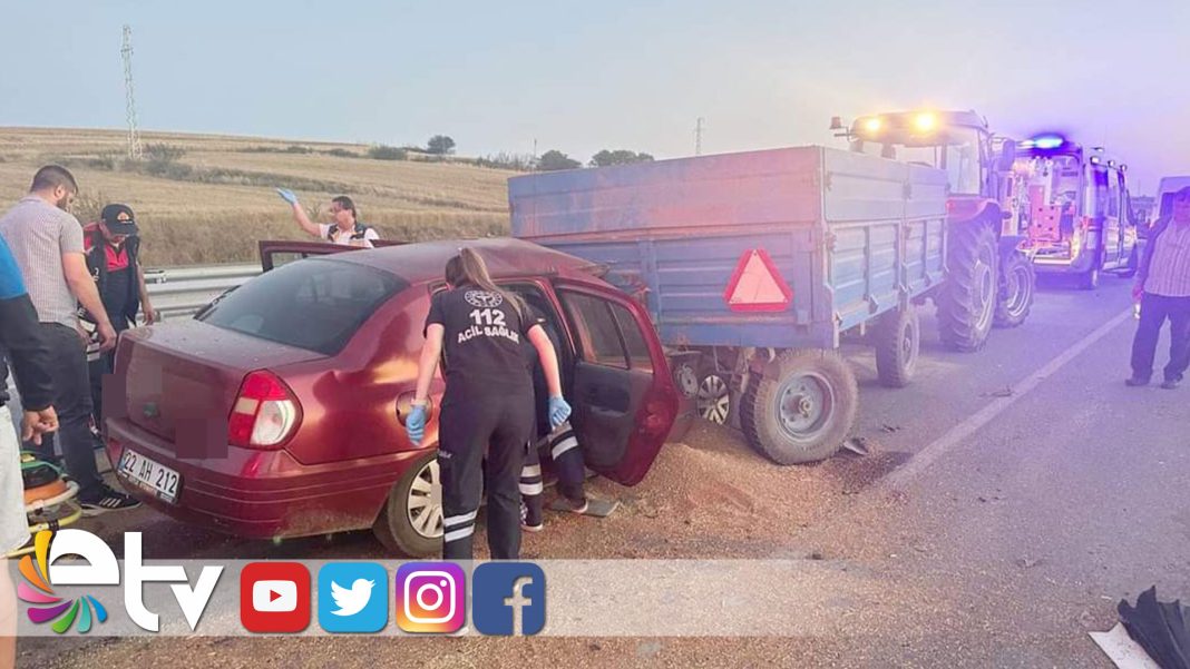 Edirne’de buğday yüklü traktör römorkuna çarpan otomobildeki 2 kişi hayatını kaybetti.