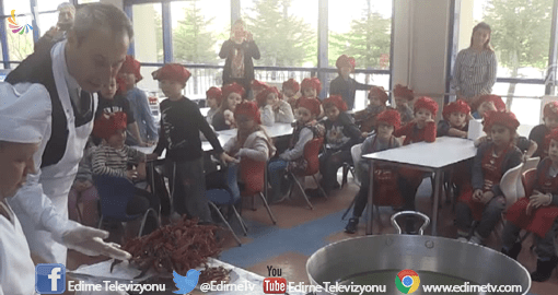 Adına türkü yapılan, ünü dünyayı aşan Edirne’nin gastronomideki en iddialı tadı tava ciğer, öğrencilerin kültür dersleri eşliğinde sınıfta türküsü eşliğinde pişirildi.