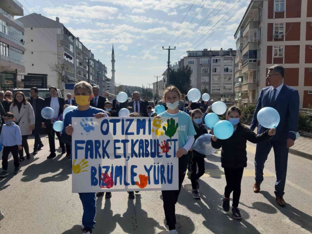 Edirne Plevne İlkokulu öğrenci ve öğretmenleri, Dünya Otizm Farkındalık Günü etkinlikleri çerçevesinde ellerinde mavi balonlar ve pankartlarla yürüyüş gerçekleştirdi.