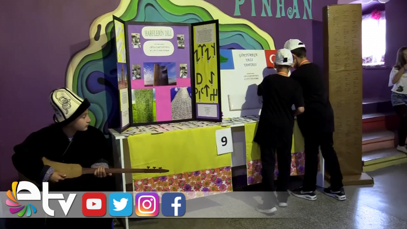 Fuarda okulun öğrencilerinden Yağız Tunç ve Eren Şevik, okulun kütüphanesinde kullanılması ve gelecek nesillere de aktarılması amacıyla Türkçe'nin en eski yazılı metinlerinin yazıldığı Göktürkçe alfabelerden oluşan tahta projesi hazırladı.