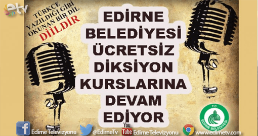Edirne Belediyesi Kültür ve Sosyal İşleri Müdürlüğü bünyesinde sürdürülen Diksiyon Kursu 39.Dönem kayıt başvuruları 03 Ekim 2016 tarihinde başlıyor.