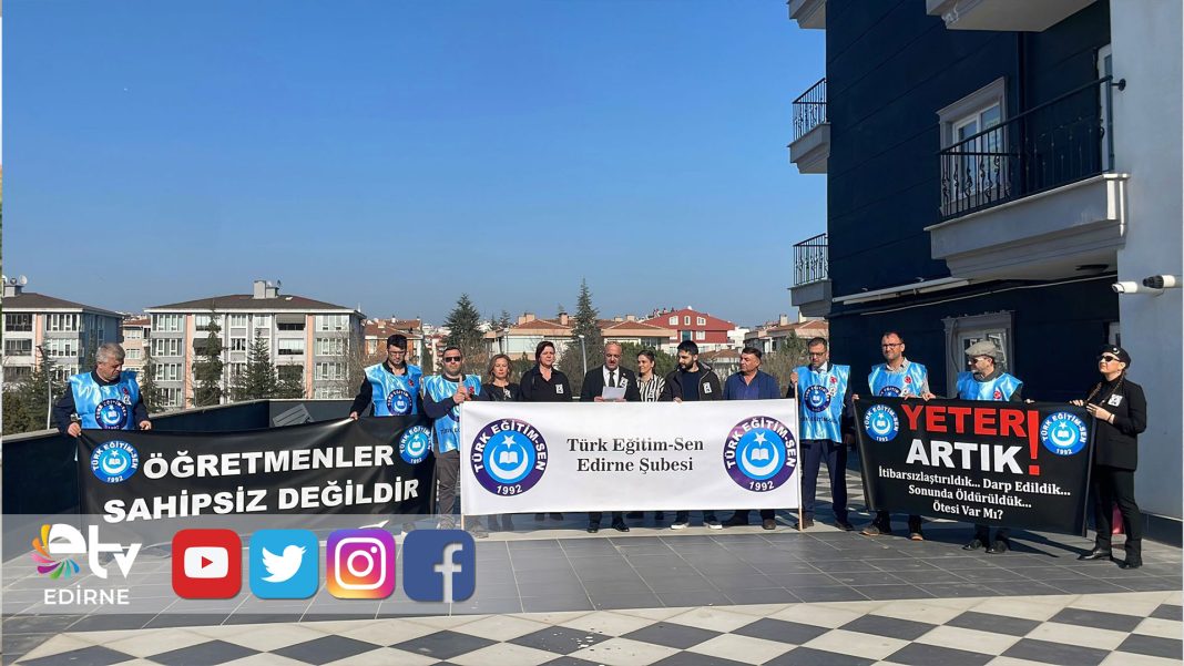 Türk Eğitim-Sen Edirne Şubesi, İstanbul’da bir öğretmenin öğrencisi tarafından öldürülmesinin ardından “okullarda güvenlik” çağrısı yaptı. Sendika, eğitim çalışanlarına yönelik şiddetin önlenmesi için caydırıcı yasa ve kalıcı güvenlik tedbirleri istedi.