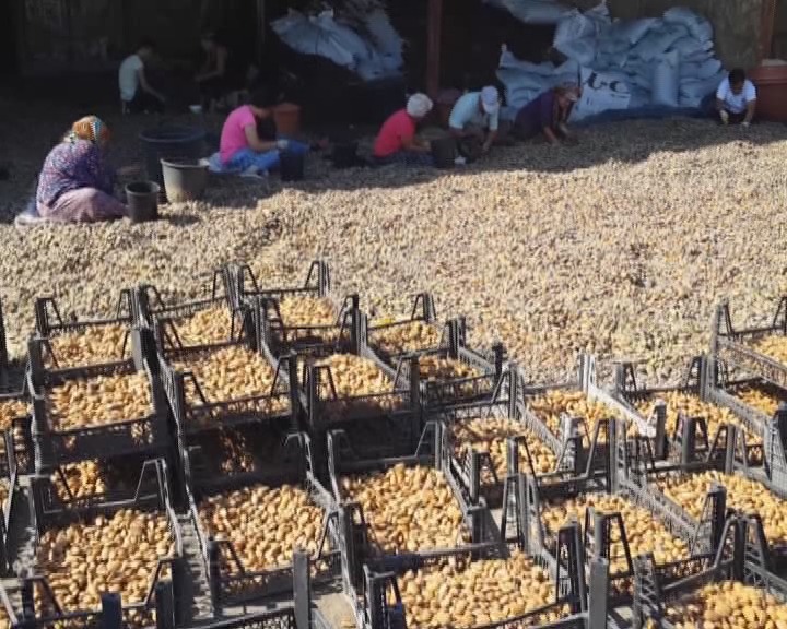 Edirne’de badem hasadı başladı. Toplanan bademlerin kabukları açılıyor ve diğer işlemlerden geçirildikten sonra satışa sunuluyor.