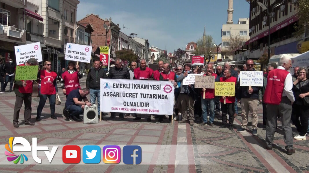 DİSK’e bağlı Emekli Sen üyeleri, Saraçlar Caddesi’nde basın açıklaması yaptı. CHP Edirne Milletvekili Okan Gaytancıoğlu’nun da destek verdiği basın açıklamasına katılan sendika üyeleri, ellerinde taşıdıkları dövizlerle, emeklilerin geçinemediğini, insanca yaşayabilecekleri bir ücret talebinde bulundu.