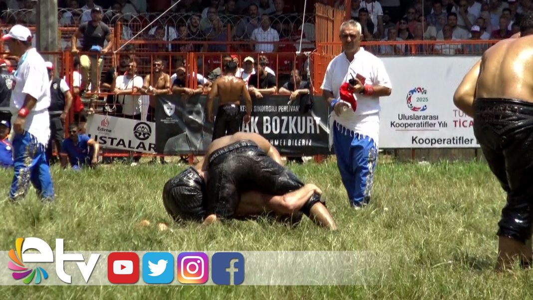 Tarihi Kırkpınar Yağlı Güreşleri çeyrek final müsabakalarında Enes Doğan’ın, İsmail Balaban’ı yendiği an.