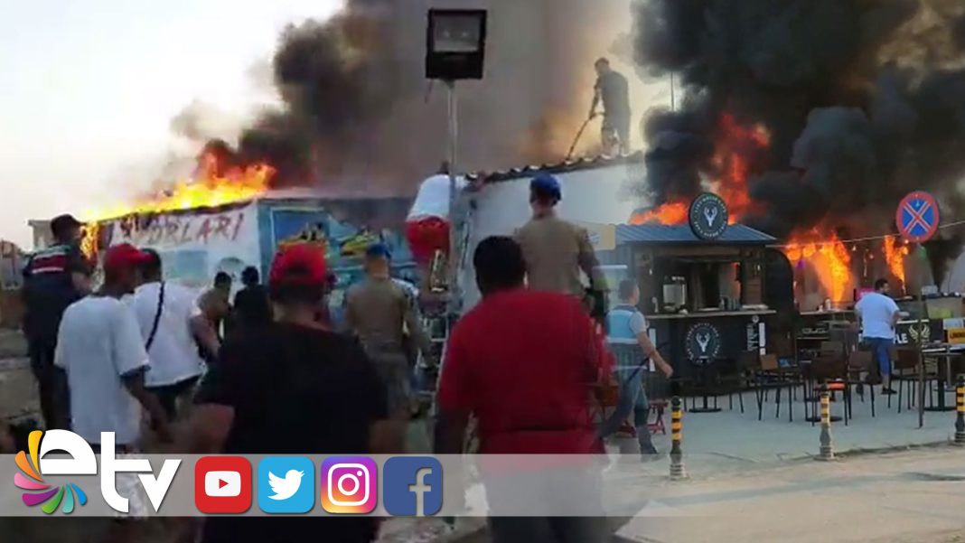 Ancak vatandaşların müdahalesi yetersiz kaldı. Turistik tesisteki 4 konternerdan 3’ü tamamen yanarak kullanılamaz hale geldi.