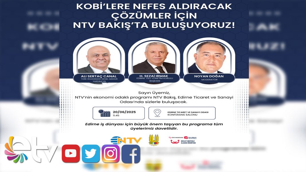 Edirne Ticaret ve Sanayi Odası, NTV ekranlarında yayınlanan ekonomi programı NTV Bakış’a ev sahipliği yapacak.