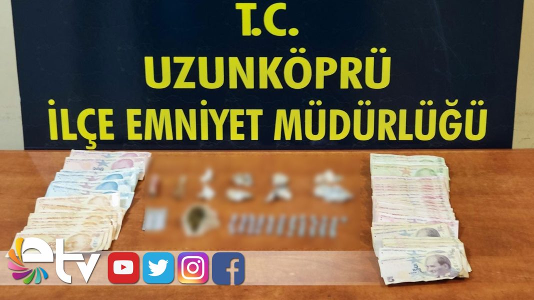 Uzunköprü İlçe Emniyet Müdürlüğüne Bağlı Narkotik Şube Müdürlüğü ekipleri tarafından M.Ç. isimli şahsın evinde arama yapıldı. Yapılan aramada, 45 adet ecstacy hap, 10 gram esrar, uyuşturucu madde içiminde kullanılan düzenekler ile suçtan elde edildiği değerlendirilen 2 bin 15 lira ele geçirildi.