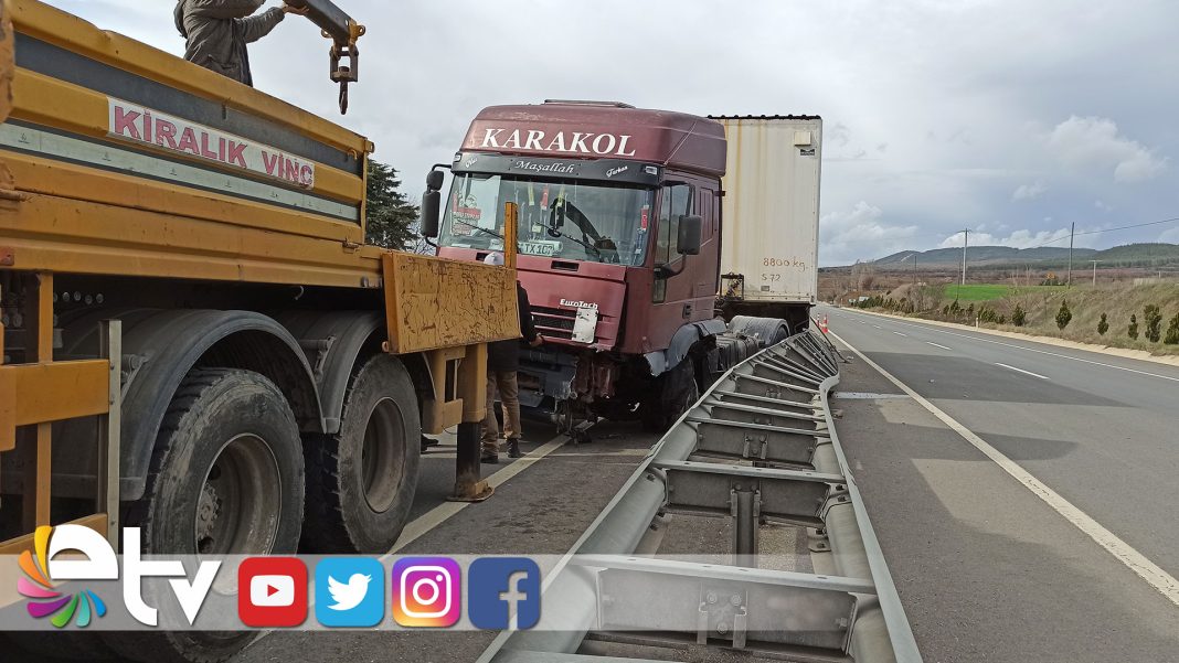 Kazanın haber verilmesi üzerine bölgeye gelen polis ekipleri trafik akışını bir süre kontrollü olarak sağlarken, vinç yardımıyla bulunduğu yerden çıkarılan tırın, çekici yardımıyla bölgeden kaldırılmasının ardından trafik normale döndü.
