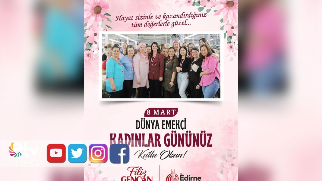 Edirne Belediye Başkanı Filiz Gencan, 8 Mart Dünya Emekçi Kadınlar Günü dolayısıyla yayımladığı mesajda, kadınların emeğinin, üretiminin ve toplumsal yaşamdaki varlığının Cumhuriyet’in gücünü büyüttüğünü vurguladı.
