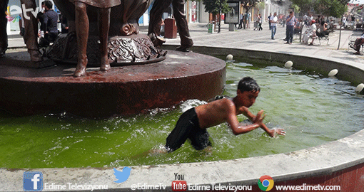 Türkiye mevsim normalleri üzerinde seyreden hava sıcaklıklarının etkisi altında, kavurucu sıcaktan bunalan çocuklar ise çareyi süs havuzlarına girerek serinlemekte buldu. Edirne Belediye Başkanlığı önünde yer alan süs havuzunda ve saraçlar caddesinde serinlemeye çalışan çocuklar ise aslında büyük tehlike altında. Çünkü süs havuzlarının içi sağlık bakımından girmeye uygun değil ve tamamının yakınında elektrik tesisatları yer alıyor.