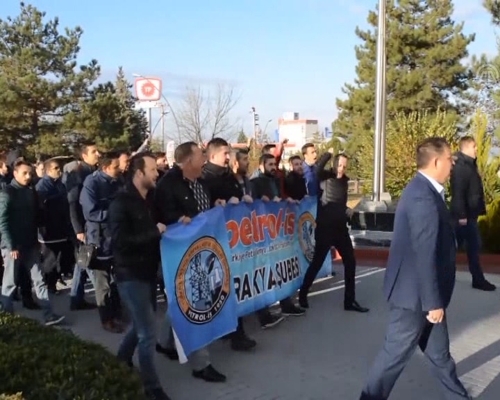 Petrol-İş Sendikası üyesi bir grup işçi, ellerinde sendika bayrakları taşıyarak TPAO bahçesinde toplanıp iş başı yapmadı.