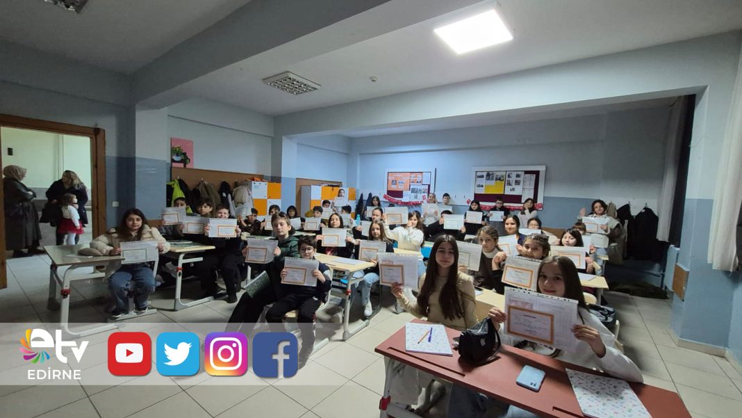 Edirne’de 2025–2026 eğitim öğretim yılının ilk döneminin sona ermesiyle birlikte karne heyecanı okullarda yaşandı. Gazi Osmanpaşa Ortaokulu’nda düzenlenen karne töreninde öğrenciler, emeklerinin karşılığını almanın mutluluğunu yaşadı.