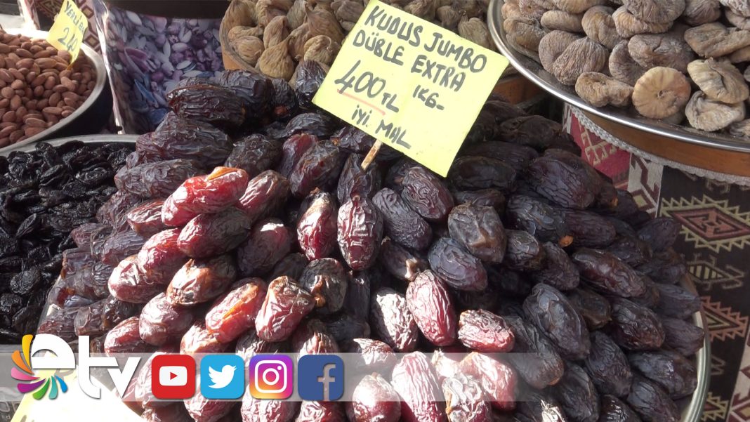 Ramazan ayının başlamasına sayılı günler kala iftar sofralarının vazgeçilmezi hurma da tezgahlardaki yerini aldı. Hurma fiyatları ise cinsine göre 170 ile 400 lira arasında değişiyor. Fiyatların geçen yıla oranla yüzde 300 arttığını belirten esnaf Hakan Çakıcı, fiyat artışlarından dolayı vatandaşların gramla alışveriş yapabildiğini ifade etti.