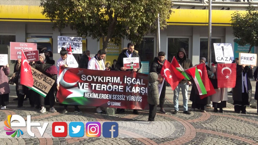 Edirne’de Trakya Üniversitesi Tıp Fakültesi öğrencileri, İsrail’in Gazze’ye yönelik saldırılarına tepki göstermek için düzenledikleri sessiz yürüyüşün 9’uncusunu gerçekleştirdi.