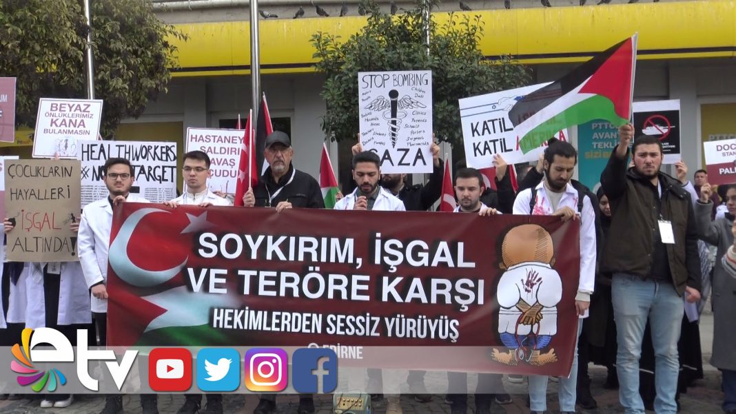 Trakya Üniversitesi Tıp Fakültesi öğrencileri İsrail‘in Gazze‘ye yönelik saldırılarını protesto etmek amacıyla, Selimiye Camii önünde toplanarak, ellerinde pankartlar ve bayraklarla Saraçlar Caddesi’ne yürüdü. 8’incisi düzenlenen sessiz yürüyüş etkinliğinde basın açıklamasını Tıp Fakültesi 3’üncü sınıf öğrencisi Muammer Morkoç okudu.