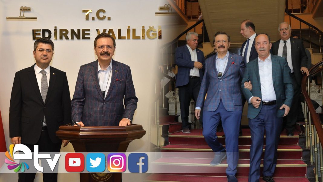 Türkiye Odalar ve Borsalar Birliği Başkanı Rifat Hisarcıklıoğlu, Edirne Valisi Hüseyin Kürşat Kırbıyık ve Edirne Belediye Başkanı Recep Gürkan’ı ziyaret etti.