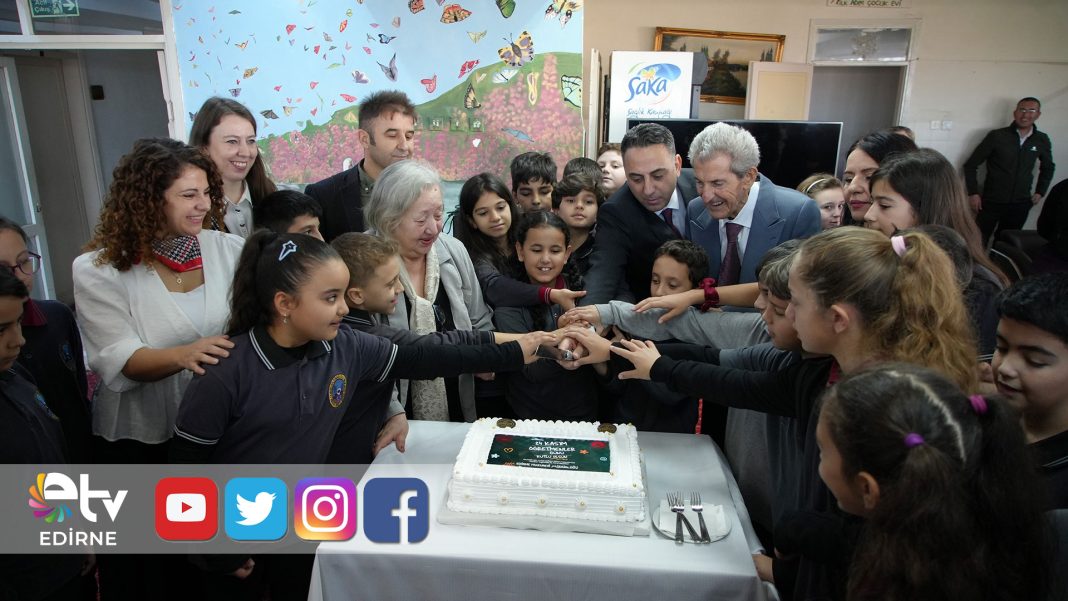Akmercan Anadolu İmam Hatip Ortaokulu öğrencileri, Edirne Huzur Evi sakini olan emekli öğretmenler Sedat Seyyar ve Sevgi Pazar’ı ziyaret etti. Öğrenciler, emekli öğretmenleri ellerini öpüp çiçekler vererek kutladıktan sonra, “Dünyanın bütün çiçekleri” şiirini seslendirdiler.