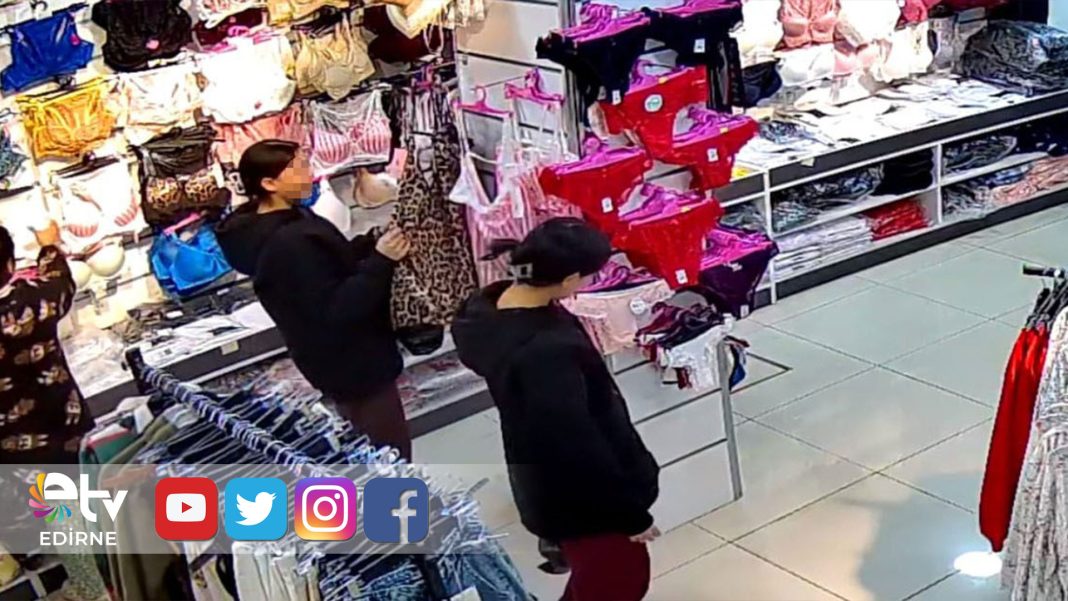 Edirne’de bir giyim mağazasına giren 3 genç kızın, iç çamaşırı ve çorap gibi ürünleri çaldığı anlar iş yerinin güvenlik kameralarına yansıdı.