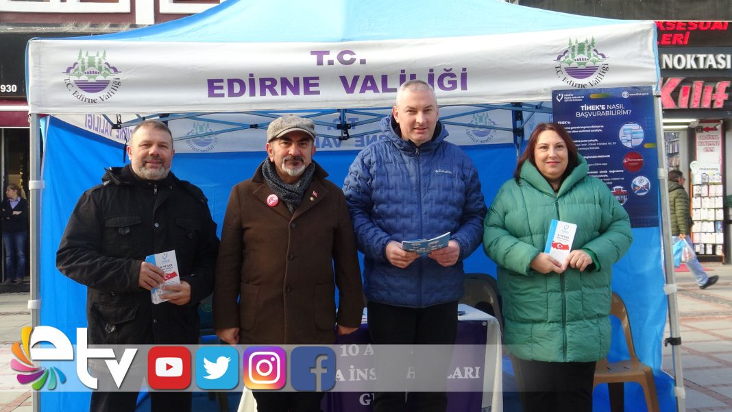 Dünya İnsan Hakları günü dolayısıyla Saraçlar Caddesi’nde stant kuruldu. Stantta Edirne İnsan Hakları Kurulu üyeleri tarafından vatandaşlara broşür dağıtılarak, hakları konusunda bilgilendirmeler yapıldı.