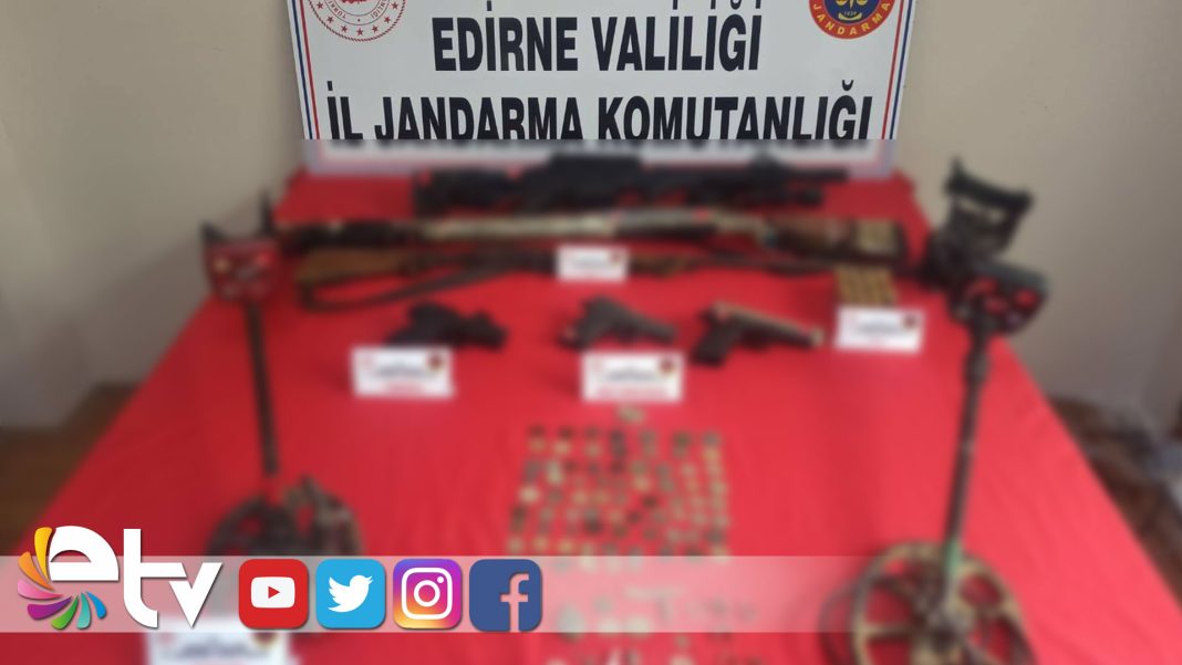 Edirne İl Jandarma Komutanlığı ekipleri tarafından 3 şahsın ev ve eklentilerinde yapılan aramalarda; 3 adet tabanca, 3 adet tüfek, 349 adet tarihi sikke ve 175 adet tarihi obje ele geçirildi.
