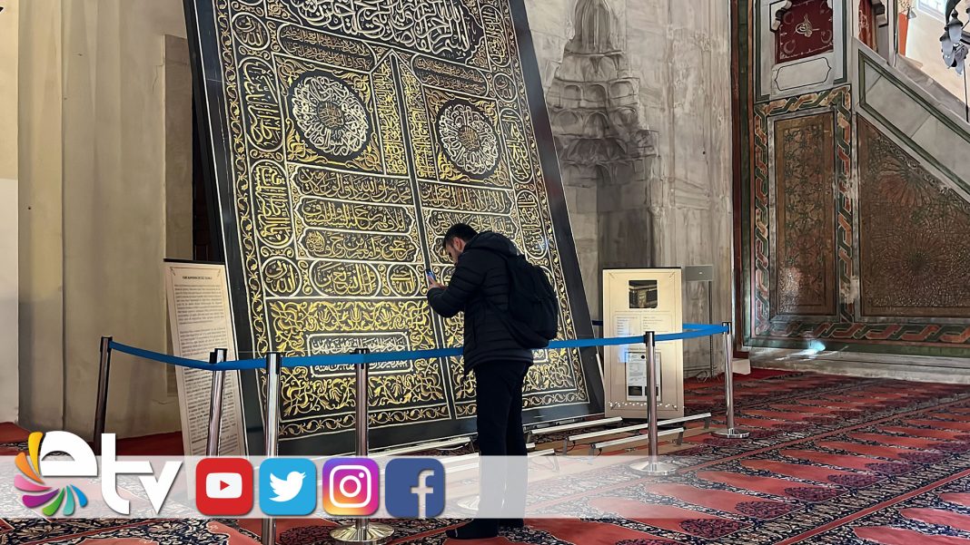 1988 yılına ait Kabe örtüsünün Eski Cami’de sergilenmeye başladığını söyleyen Edirne İl Müftüsü Ercan Aksu, örtünün Ramazan ayının sonuna kadar ziyarete açık olduğunu söyledi.
