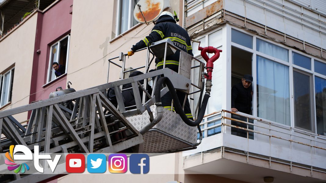 Edirne’de bir apartmanda çıkan yangında mahsur kalan hamile kadın ve vatandaşlar, itfaiye ekipleri tarafından merdiven yardımıyla pencere ve balkonlardan kurtarıldı.