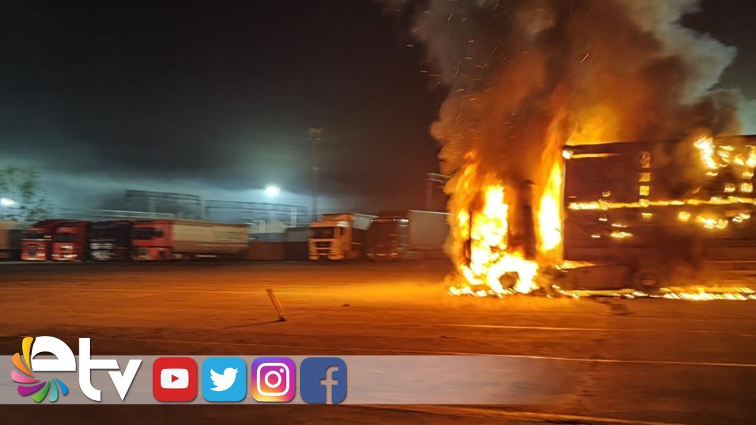 Edirne Kapıkule Sınır Kapısı’nda, boş peynir tenekeleri ile yüklü olan tır, alev alev yandı.