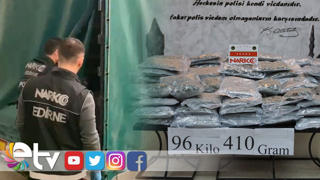 Edirne’de valizler içinde, 96 kilo 410 gram uyuşturucu madde ile yurda giriş yapan iki tır sürücüsü, Kapıkule Sınır Kapısı’nda valizleri çöpe atarken yakalandı.