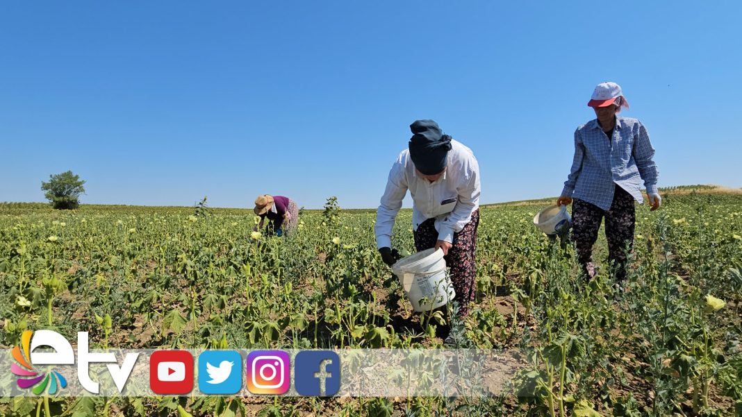 Tarla işçileri de, Siğilli bamyasının hasadı hakkında bilgiler verdi.