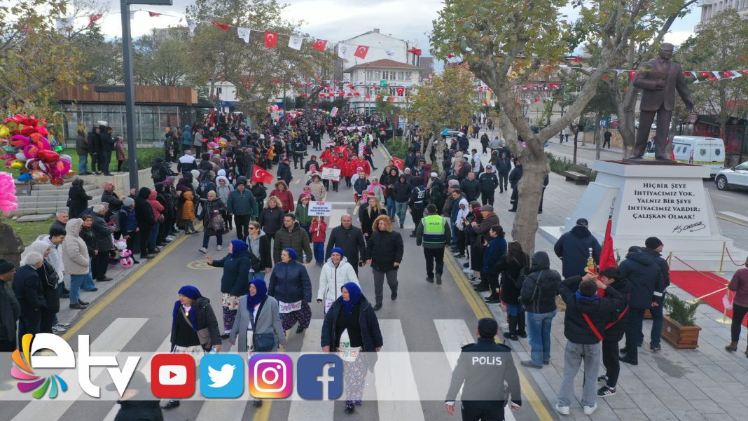 Kutlama programı; Atatürk Anıtı’na çelenklerin sunulmasının ardından Keşan Belediye Bandosu eşliğinde saygı duruşunda bulunulması ve İstiklal Marşı’nın söylenmesiyle başlarken, günün anlam ve önemini belirten konuşma ise Keşan Belediye Başkanı Mustafa Helvacıoğlu tarafından yapıldı.