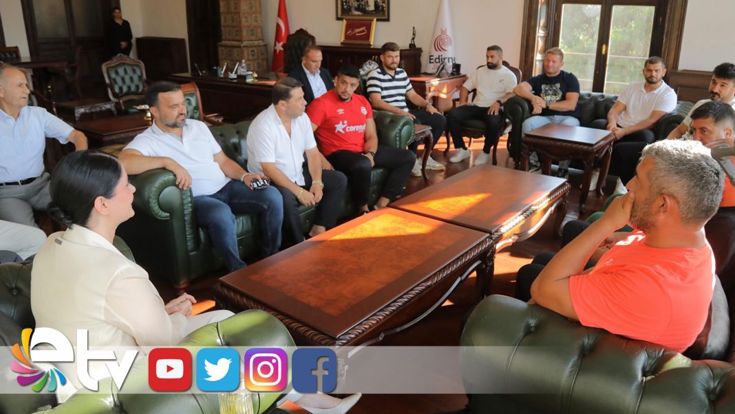 664. Tarihi Kırkpınar Yağlı Güreşleri’nde güreşecek başpehlivanlardan Furkan Durmuş Altın, Orhan Okulu, İsmail Balaban ve Kürşat Şevki Korkmaz, Edirne Belediye Başkanı Av. Filiz Gencan Akın’ı ziyaret etti. Tarihi Belediye Binası’nda gerçekleşen ziyarete; Elmalı Belediye Başkan Yardımcısı Hasan Aydın, Kırkpınar Güreşleri Koordinatörü İbrahim Doğan ve pehlivanların ustaları da katıldı.