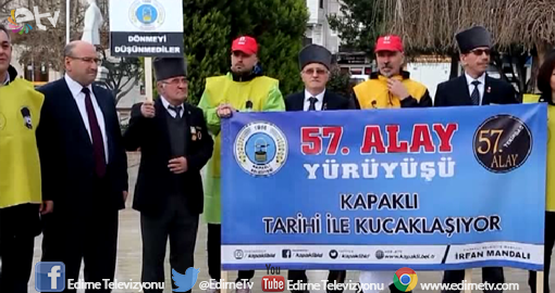 57. Alay Yürüyüş Komitesi'nin organizasyonunda bir araya gelen “57. Alay Tarihine Yürüyor” ekibinin Çanakkale'ye uğurlanması dolayasıyla Tekirdağ Valiliği önünde tören düzenlendi.