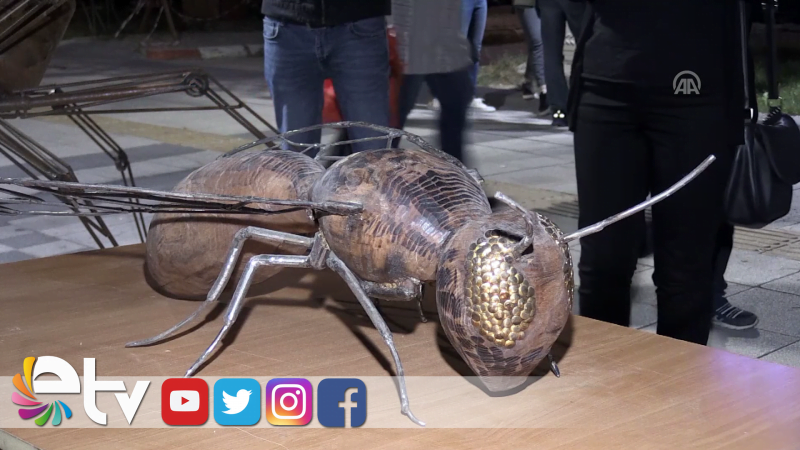 “Yaptığımız eserlerin manaları var. Örneğin örümcek. Örümcek mesela bir şeyi iki şekilde yapar. Kendini savunmasını da saldırmasını da evini kurmasını da tamamen ağ sistemiyle yapar. O örümcek heykeli bunu anlatır.”