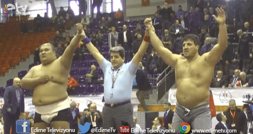 Tarihi Kırkpınar Yağlı Güreşleri’nin son şampiyonu Recep Kara, sumoda Asya şampiyonu Kırgız güreşçi Almaz Ergeshov ile gösteri maçında karşı karşıya geldi.
