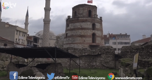 Roma İmparatoru Hardianus tarafından kurulan Edirne'yi çevreleyen surların dört köşesindeki kulelerden asıl adı Makedonya Kulesi olan kule (Saat Kulesi) günümüze ulaşan tek örnek durumunda. Edirne Valilerinden Hacı İzzet Paşa'nın kule üstüne yaptırdığı ahşap katlar ve koydurduğu saatler sonrasında burası (1866-1867) Saat Kulesi olarak anılmaya başlanan kule, 1953'teki depremde büyük hasar görmüştü.