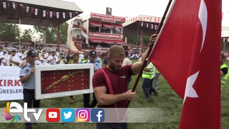 Konuşmaların ardından pehlivanların yanı sıra Kırkpınar'da görevli hakem, cazgır, davul-zurna ekibinin bulunduğu kortej, Edirne Belediyesi bandosu eşliğinde tribünleri dolaştı.