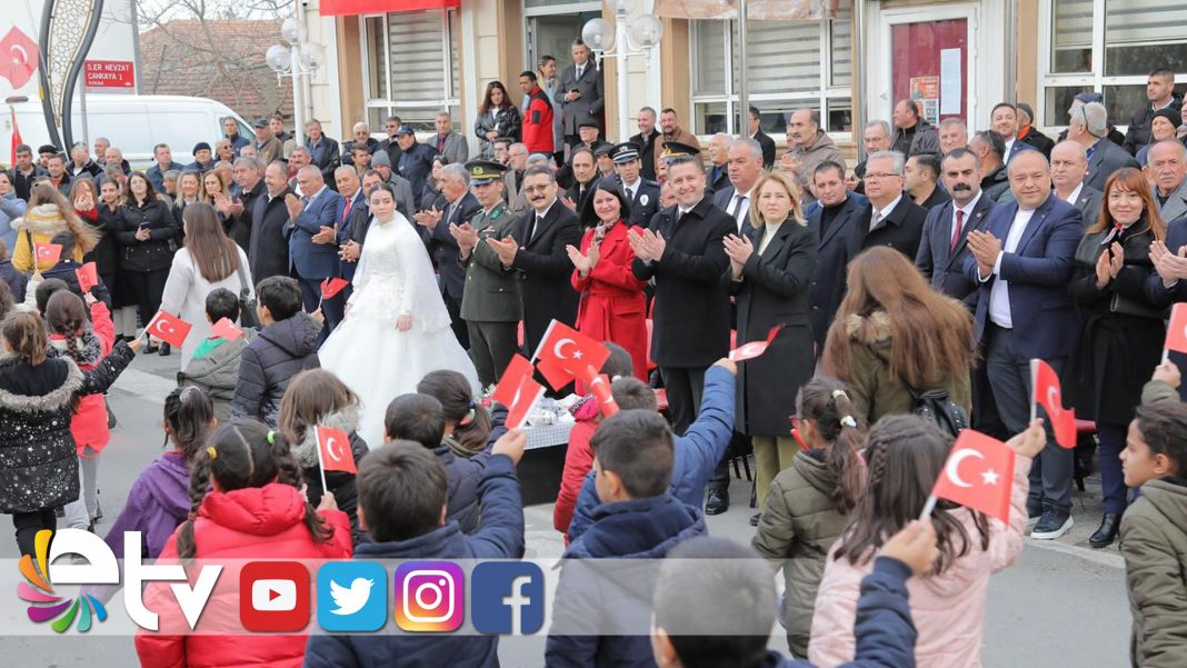 Atatürk Anıtı’na çelenklerin sunulmasıyla başlayan tören; saygı duruşunda bulunulması ve İstiklal Marşı’nın okunmasıyla devam etti.