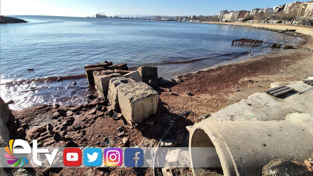 Marmara Denizi’nde etkili olan lodosun ardından Tekirdağ’ın Süleymanpaşa ilçesi kıyılarında kızıl yosunlar birikti.