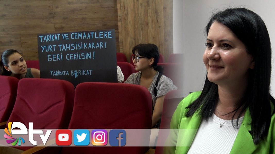 Edirne’de bin 55 metrekarelik bir arsanın Hayrat Uluslararası Öğrenci Derneği’ne tahsis edilmesini protesto etmek isteyen 3 üniversite öğrencisi, bugün gerçekleştirilen Edirne Belediye Meclisi Temmuz ayı olağan toplantısında, ‘Tarikat ve Cemaatlere Yurt Tahsis Kararı Çekilsin, Tarikata Barikat’ yazılı pankart açmak istedi. Öğrenciler ile belediye yetkilileri arasında kısa süreli gerginlik yaşandı ve öğrenciler salonu terk etti.
