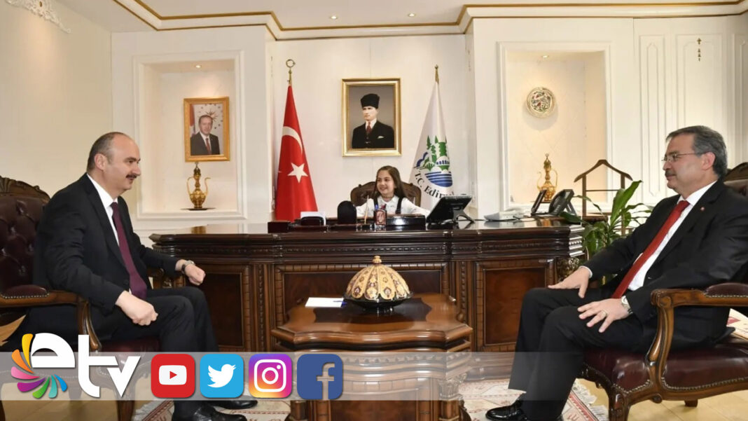 Edirne Valisi Ekrem Canalp 23 Nisan Ulusal Egemenlik ve Çocuk Bayramı etkinlikleri kapsamında; koltuğunu Fatih Sultan Mehmet Ortaokulu öğrencisi Ecrin Mercan’a devretti. Minik Vali Ecrin Mercan, Edirne’yle ilgili projelerini anlattı ve Edirne Valisi Ekrem Canalp’e eğitim ve kadına yönelik şiddetin önlenmesine yönelik yaptığı çalışmalar için teşekkür etti.