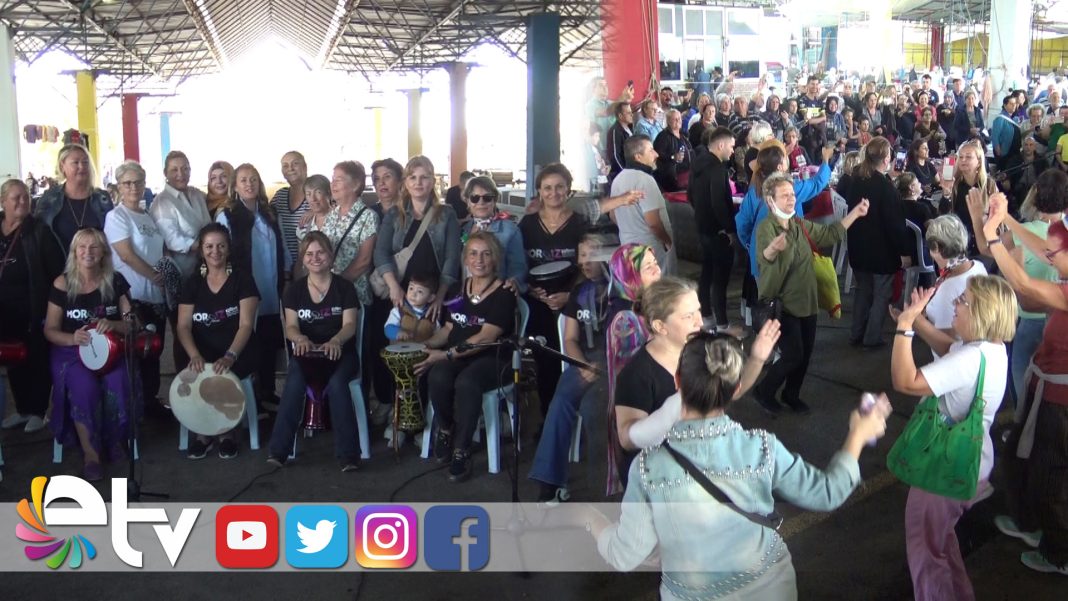 Üretici kadınlar ve pazara gelen vatandaşlar, moriz ritm grubunun gösterisi izledi.