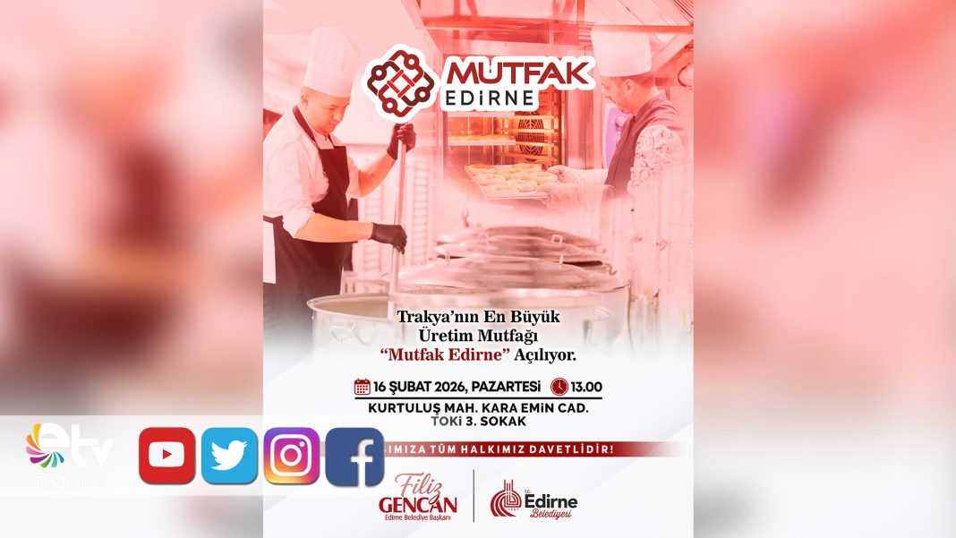 Edirne Belediyesi, sosyal destek ve gıda hizmetlerini daha güçlü ve sistemli bir yapıda yürütmek amacıyla kurduğu “Mutfak Edirne Gıda Üretim ve Lojistik Merkezi”ni 16 Şubat Pazartesi günü saat 13.00’te hizmete açıyor.