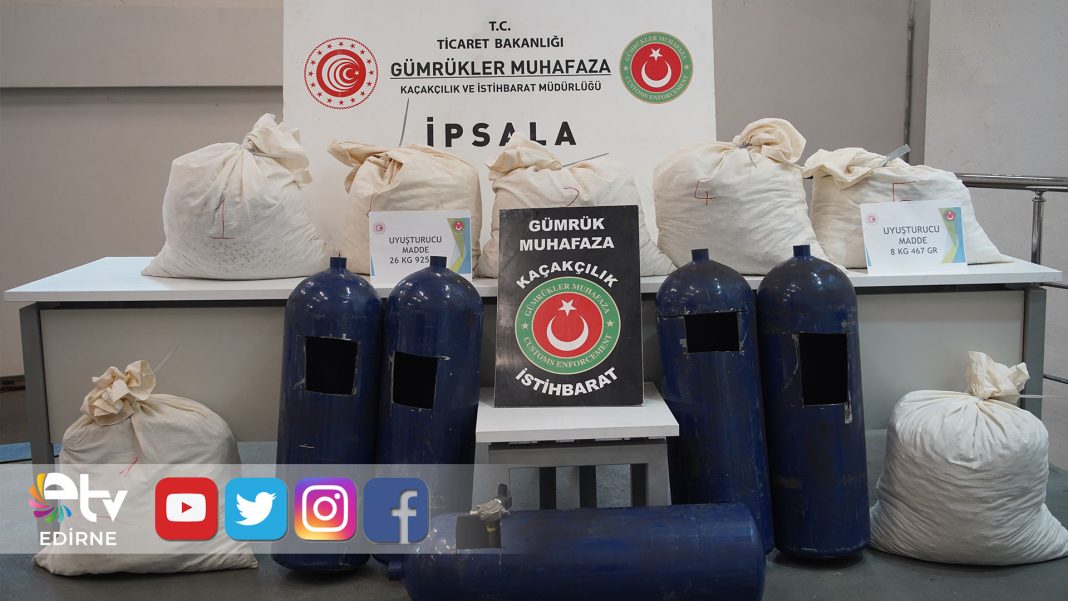 İpsala Sınır Kapısı’nda gümrük muhafaza ekiplerinin düzenlediği iki ayrı operasyonda, narkotik dedektör köpeklerinin tepki verdiği araçlarda toplam 35 kilo 392 gram uyuşturucu ele geçirildi, 2 şüpheli gözaltına alındı.