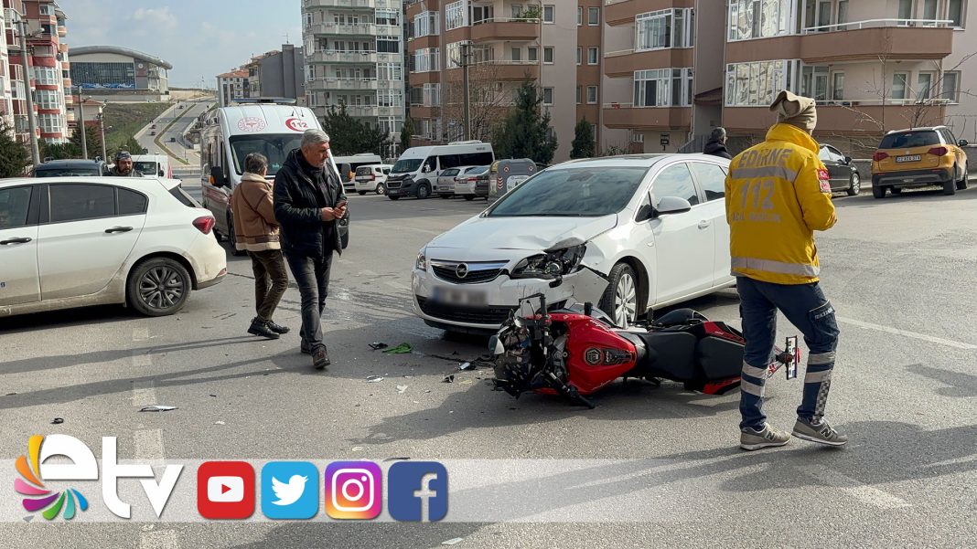 Edirne’nin Fatih Mahallesi’nde otomobille çarpışan motosikletli yaralandı.