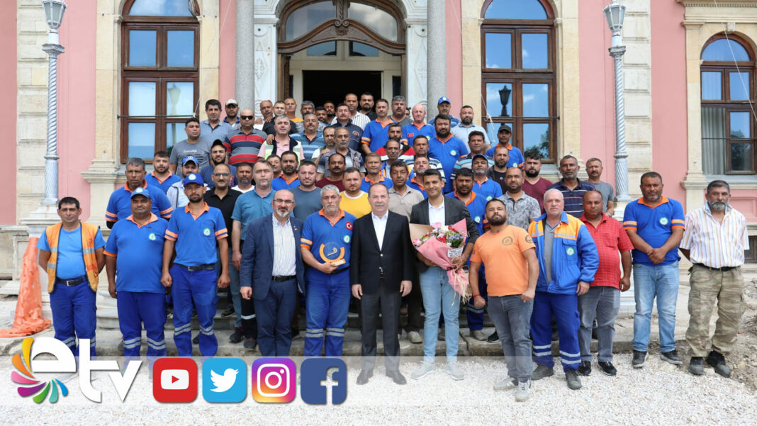 Başkan Gürkan, Belediye Meclis Salonu’nda Roman personel tarafından alkışlarla karşılandı. Belediye’de çalışan Roman personelin ziyaretiyle onur duyduğunu belirten Başkan Gürkan da personeli ‘Evinize hoş geldiniz’ diyerek, selamladı.