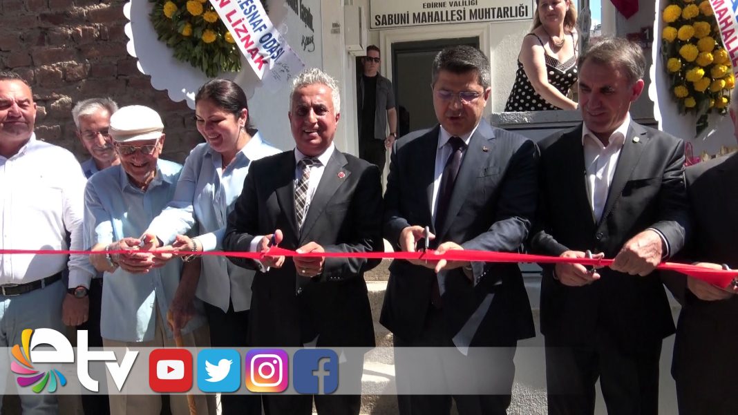 Muhtarlık ve çevre esnafın katkılarıyla onarımı yapılan bina, mahalle muhtarlığı olarak bugün düzenlenen törenle hizmete açıldı. Açılış törenine Edirne Valisi Hüseyin Kürşat Kırbıyık, Ak Parti İl Başkanı Belgin İba, MHP İl Başkanı Zakir Tercan, CHP Merkez İlçe Başkanı Olcay Bakkalcı, Trakya Birlik Yönetim Kurulu Başkanı Şafak Kırbiç, İl Emniyet Müdürü Mustafa Alçalar, İl Genel Meclisi Başkanı Mehmet Geçmiş, köy ve mahalle muhtarları ile kamu kurum ve kuruluş temsilcileri katıldı.